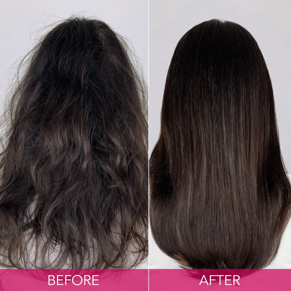 - Triple-protein and keratin blend conditions and restores strength while fighting frizz for healthy-looking smoothness and shine.