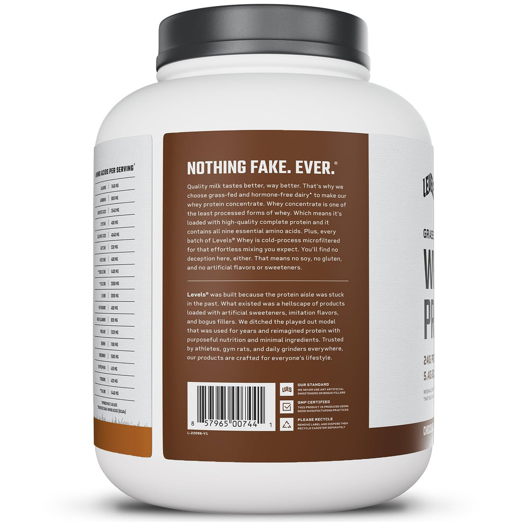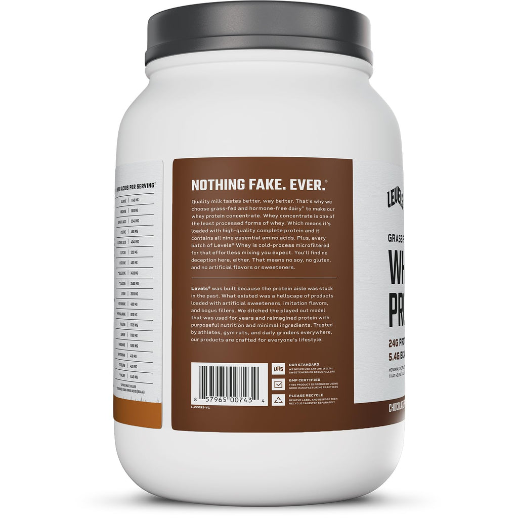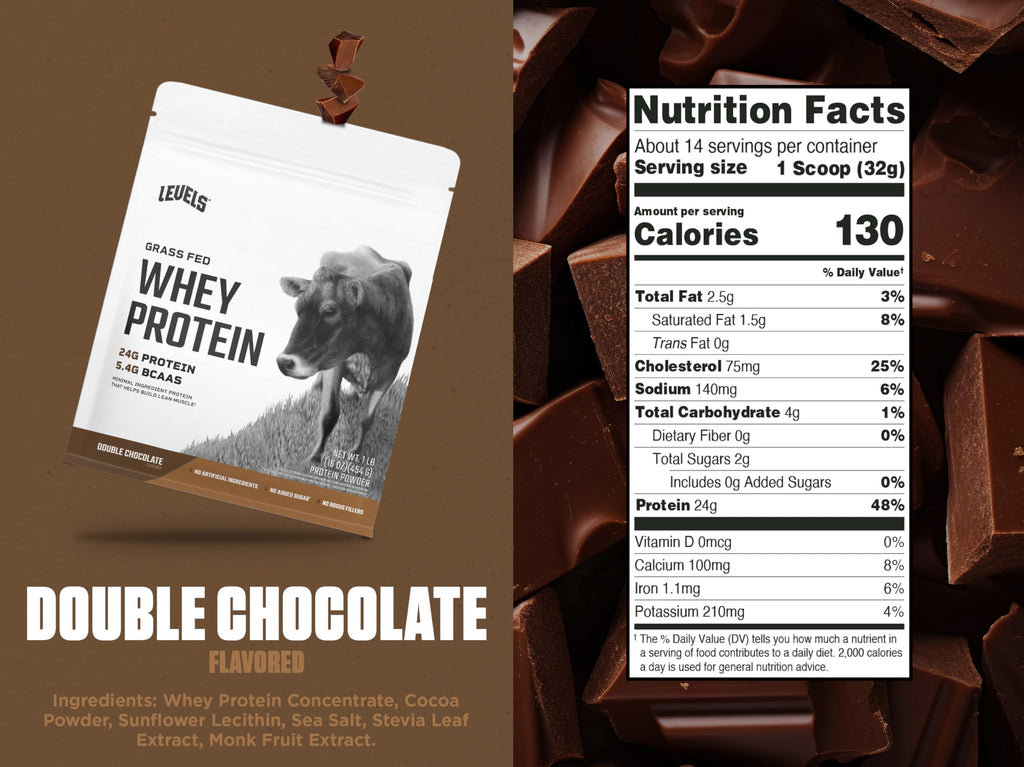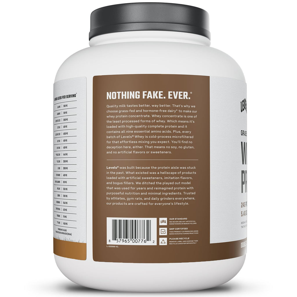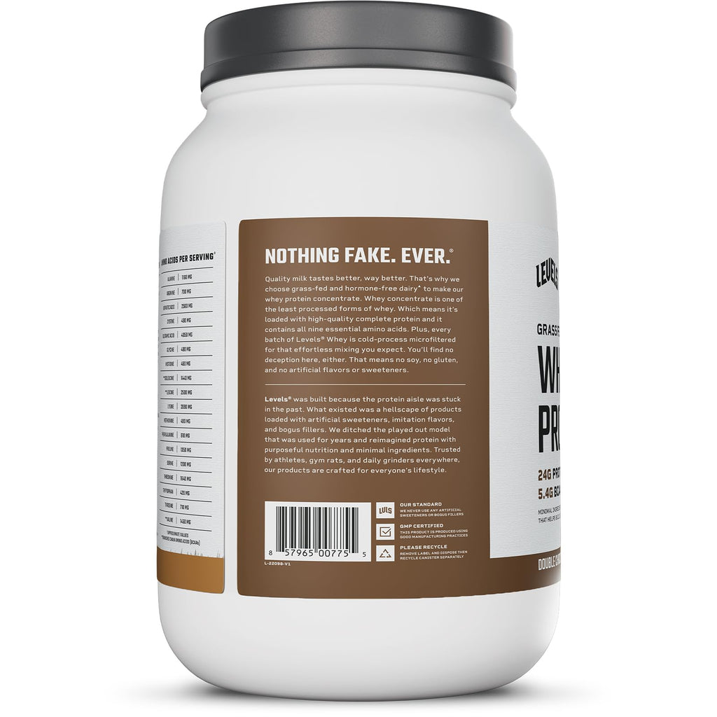Levels Grass Fed Whey Protein Powder, No Artificials, 24G of Protein, Double Chocolate, 5LB