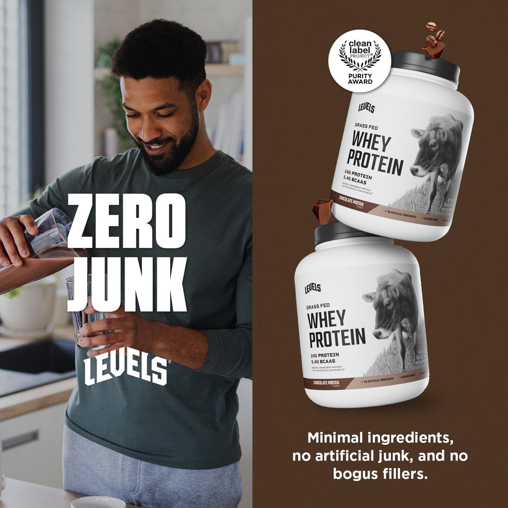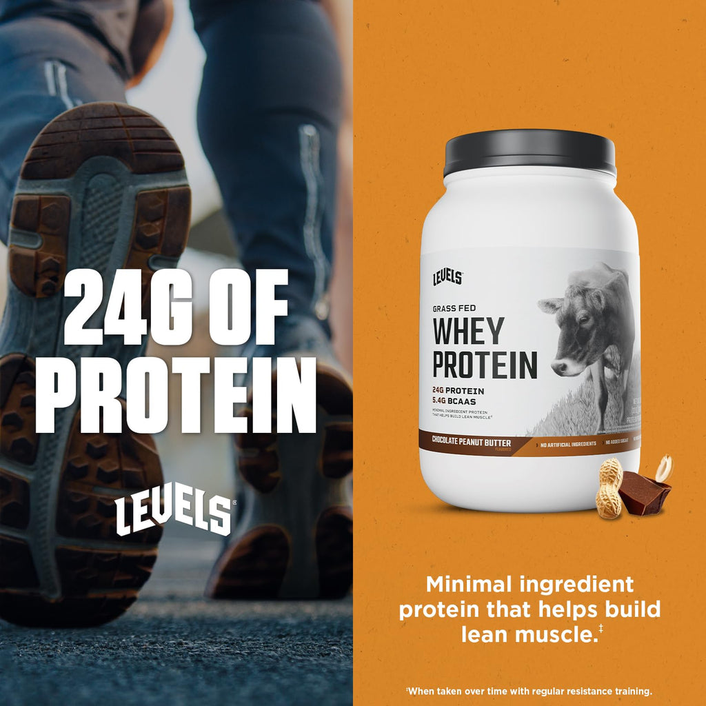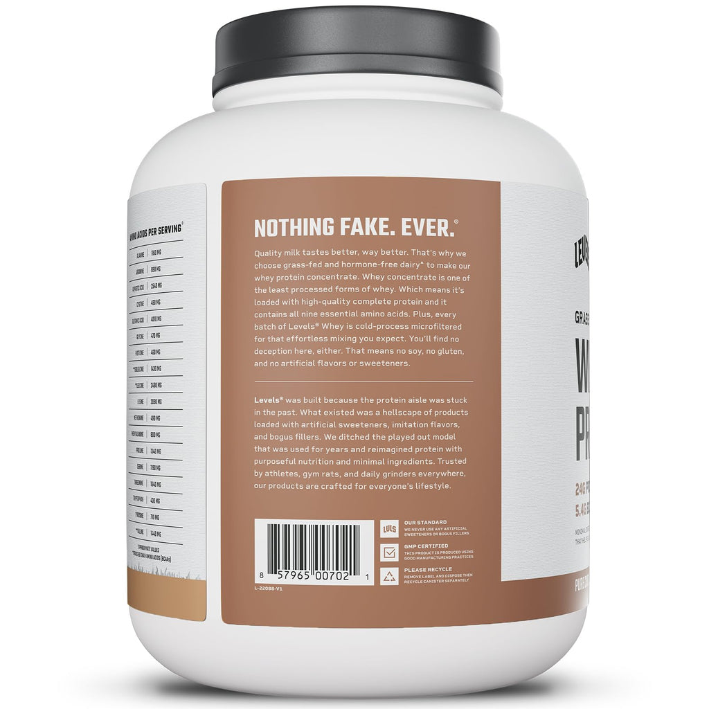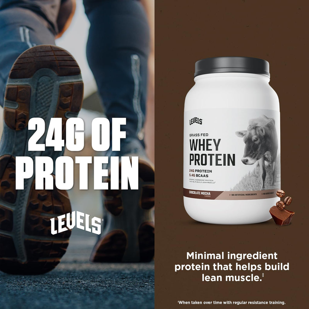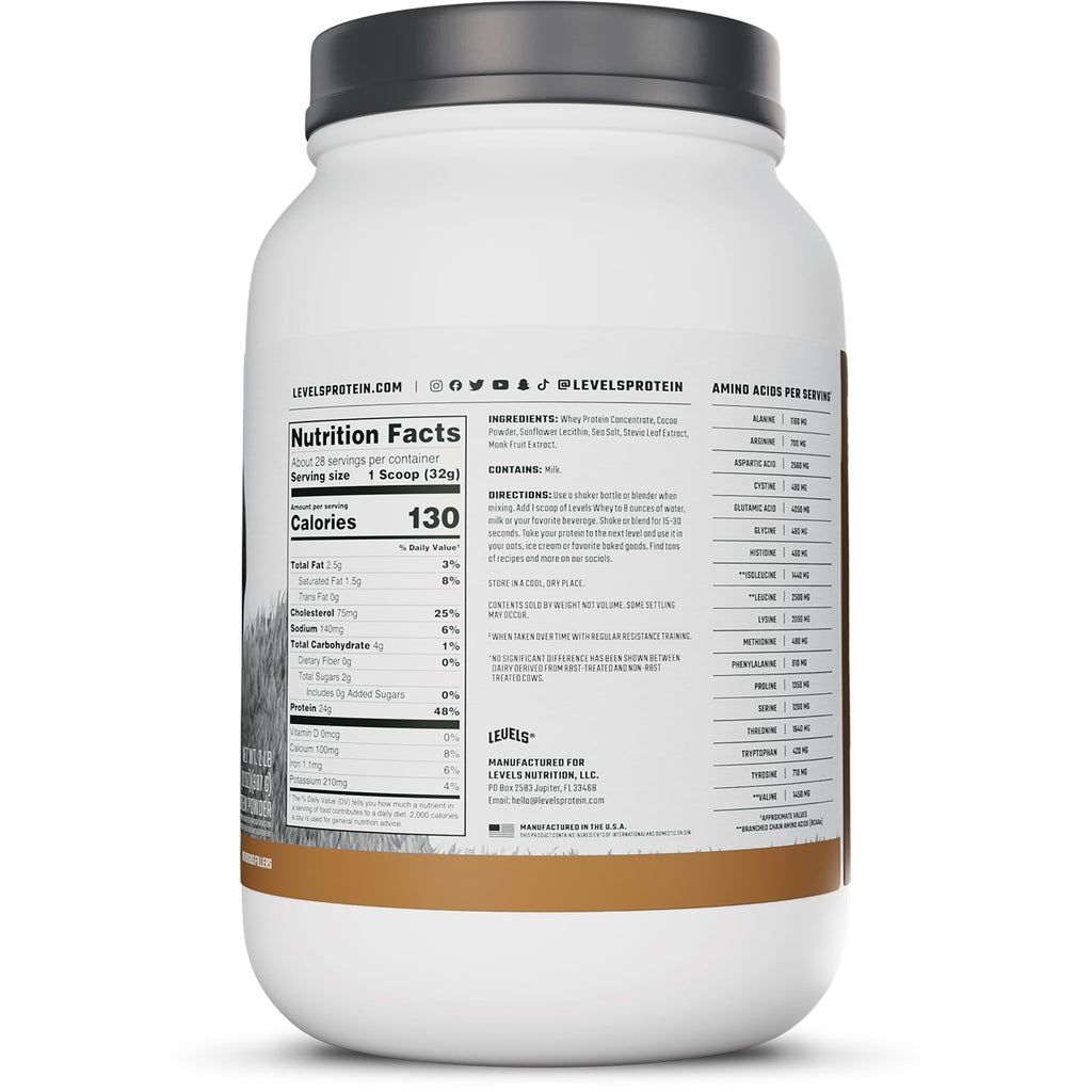 Levels Grass Fed Whey Protein Powder, No Artificials, 24G of Protein, Double Chocolate, 5LB