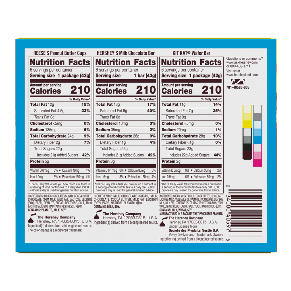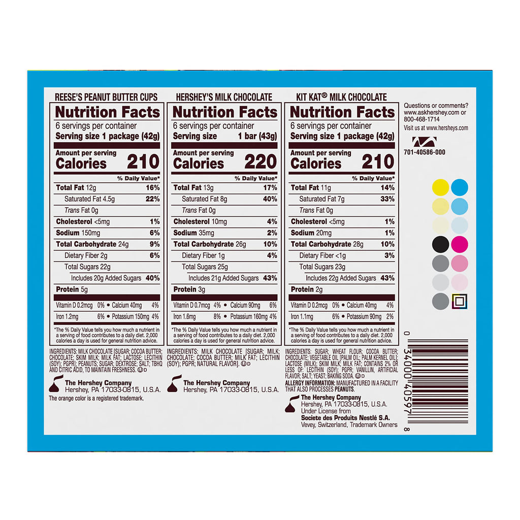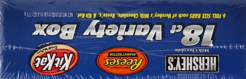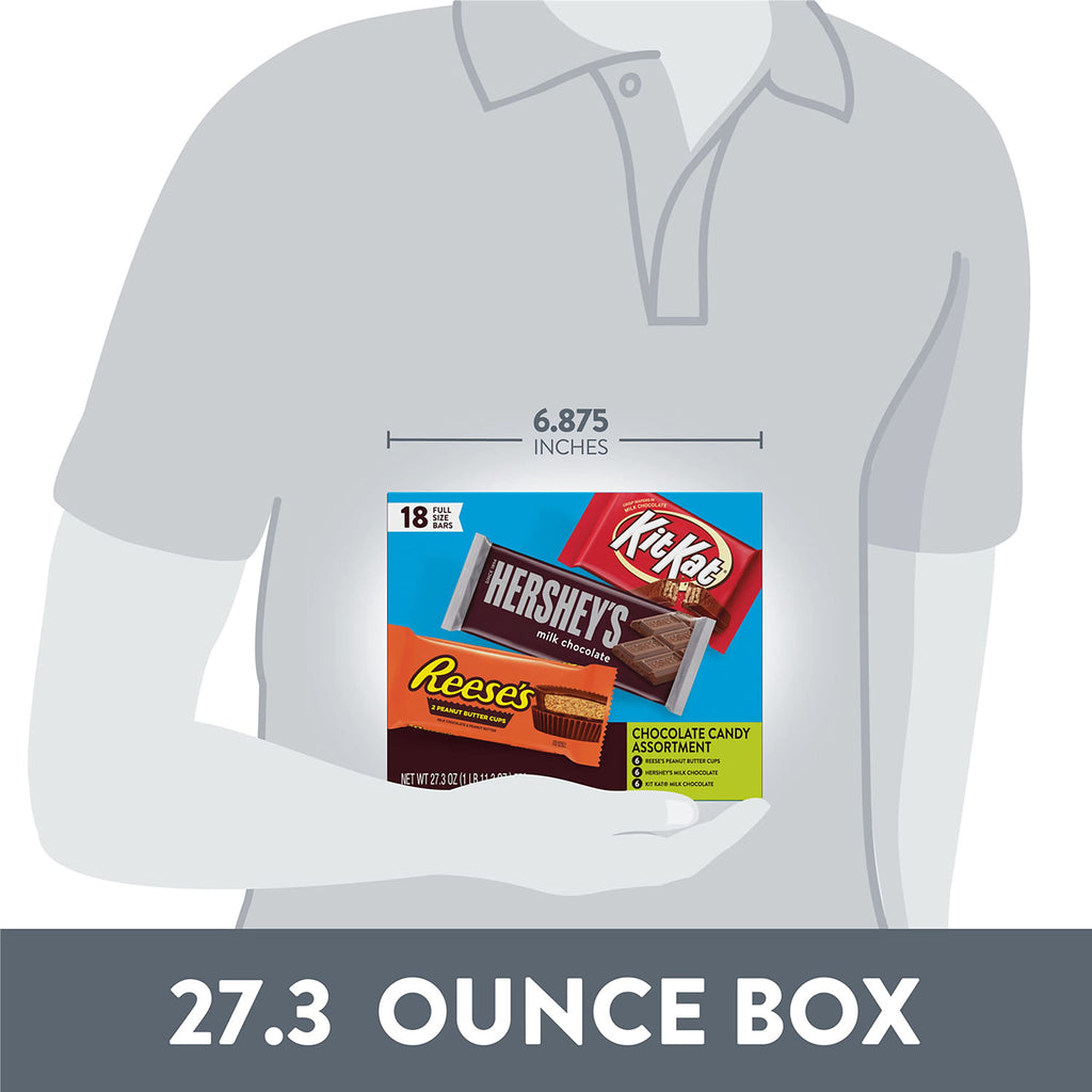 - Contains one (1) 27.3-ounce, 18-count variety pack of HERSHEY'S, KIT KAT and REESE'S Assorted Milk Chocolate Candy Bars